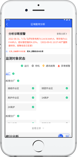 包括产品能效分析、区域能效分析、岗位能效分析等功能,从不同的层面对现场的生产耗能情况进行节能分析,找出其中的不合理之处。