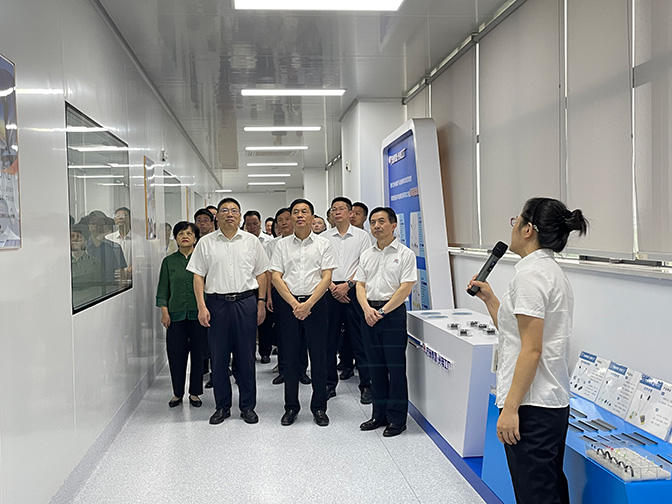 参会领导一来到金年会电气,就深入企业生产一线,了解生产经营和重点项目落地情况。在金年会集团光电工厂,金年会电气董事长、总经理赵世运首先汇报了公司在立项争资、技改提能方面开展的工作和取得的成效,并陪同领导现场参观了红外光电子元器件智能化生产线。