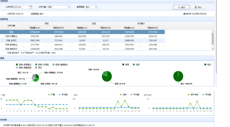 1、从班组、区域等多个维度分析各个生产节点的能源成本数据,并图形化展示分析结果。